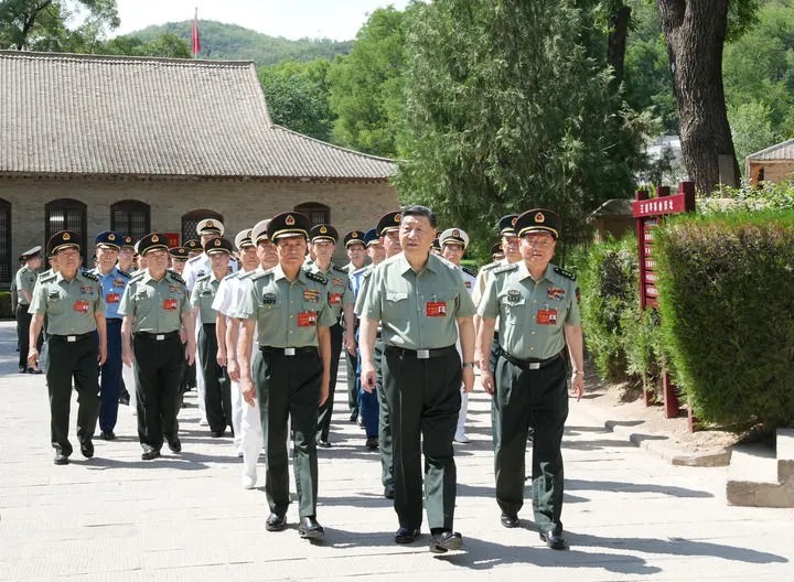6月17日至19日,中央軍委政治工作會議在陜西延安召開。中共中央總書記、國家主席、中央軍委主席習近平出席會議并發(fā)表重要講話。這是17日下午,習近平帶領軍委一班人和各部門各單位主要負責同志瞻仰王家坪革命舊址。新華社記者 李剛 攝