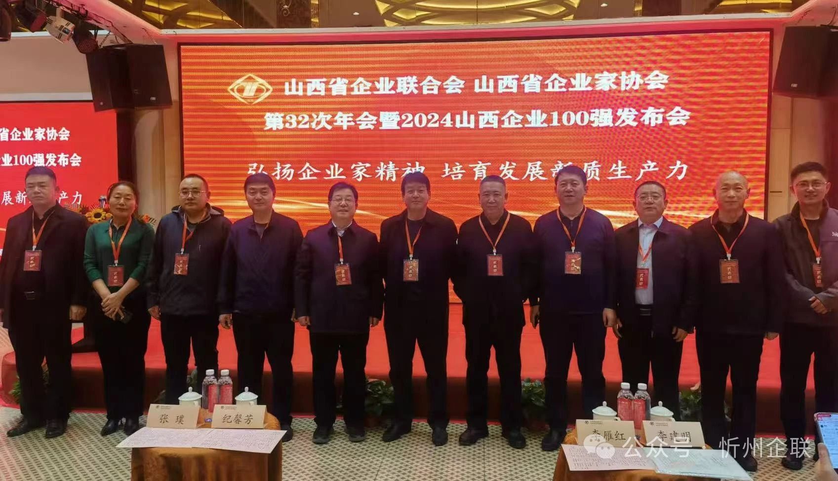 山西企聯(lián)第32次年會(huì)暨2024山西企業(yè)100強(qiáng)發(fā)布會(huì)于11月22日在太原市大昌國際酒店召開。會(huì)議以“弘揚(yáng)優(yōu)秀企業(yè)家精神,培育發(fā)展新質(zhì)生產(chǎn)力”為主題。山西企聯(lián)名譽(yù)會(huì)長、省人大原黨組書記、常務(wù)副主任紀(jì)馨芳,山西企聯(lián)顧問、省政府原副主席李雁紅,山西企聯(lián)顧問、省政協(xié)原副主席張璞,中國企聯(lián)副秘書長李建明等領(lǐng)導(dǎo)和500余名企業(yè)代表出席了會(huì)議。忻州市二十家企業(yè)上榜 ,忻州企聯(lián)會(huì)長陳志平率隊(duì)參會(huì)。