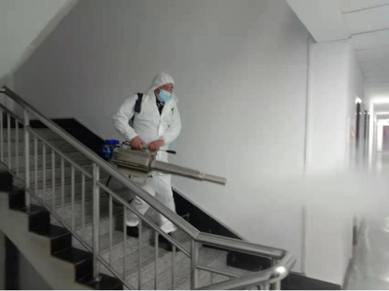 會后億通公司立即與藍(lán)天救援隊(duì)聯(lián)系,采用彌霧器等專用消毒設(shè)備,利用下班時間人員不在辦公場所時間,為兄弟單位、食堂進(jìn)行了全覆蓋、無死角、高強(qiáng)度的全面消毒。
