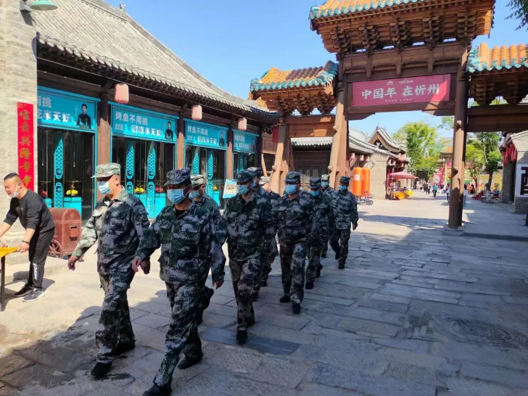 過節(jié)不忘使命,假期不忘戰(zhàn)備。五一勞動節(jié)假日期間,受上級指示,忻府區(qū)人武部駐忻州市正大物業(yè)管理有限公司民兵應(yīng)急連進(jìn)行戰(zhàn)備執(zhí)勤,出動三個排次每日巡邏于忻州古城的大街小巷,協(xié)助景區(qū)做好安保維穩(wěn)巡邏和疫情防控工作,確保游客平安游玩。