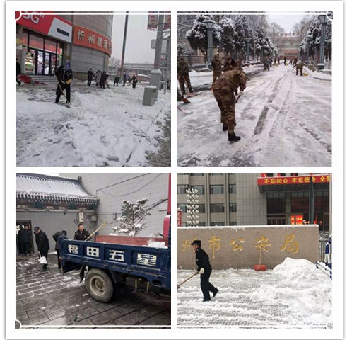 1月5日,2020年紛紛揚揚的一場大雪飄然而至,秀容大地銀裝素裹之間也讓道路覆蓋上了一層厚厚的積雪,不僅給市民出行帶來嚴重不便,也為公司開展工作帶來諸多安全隱患。為此,公司主要領(lǐng)導(dǎo)親自安排,忻州城區(qū)及各縣分支機構(gòu)迅速行動起來清除積雪,及時清掃各自駐地和周邊道路的積雪,用實際行動為我市創(chuàng)文工作做出貢獻。