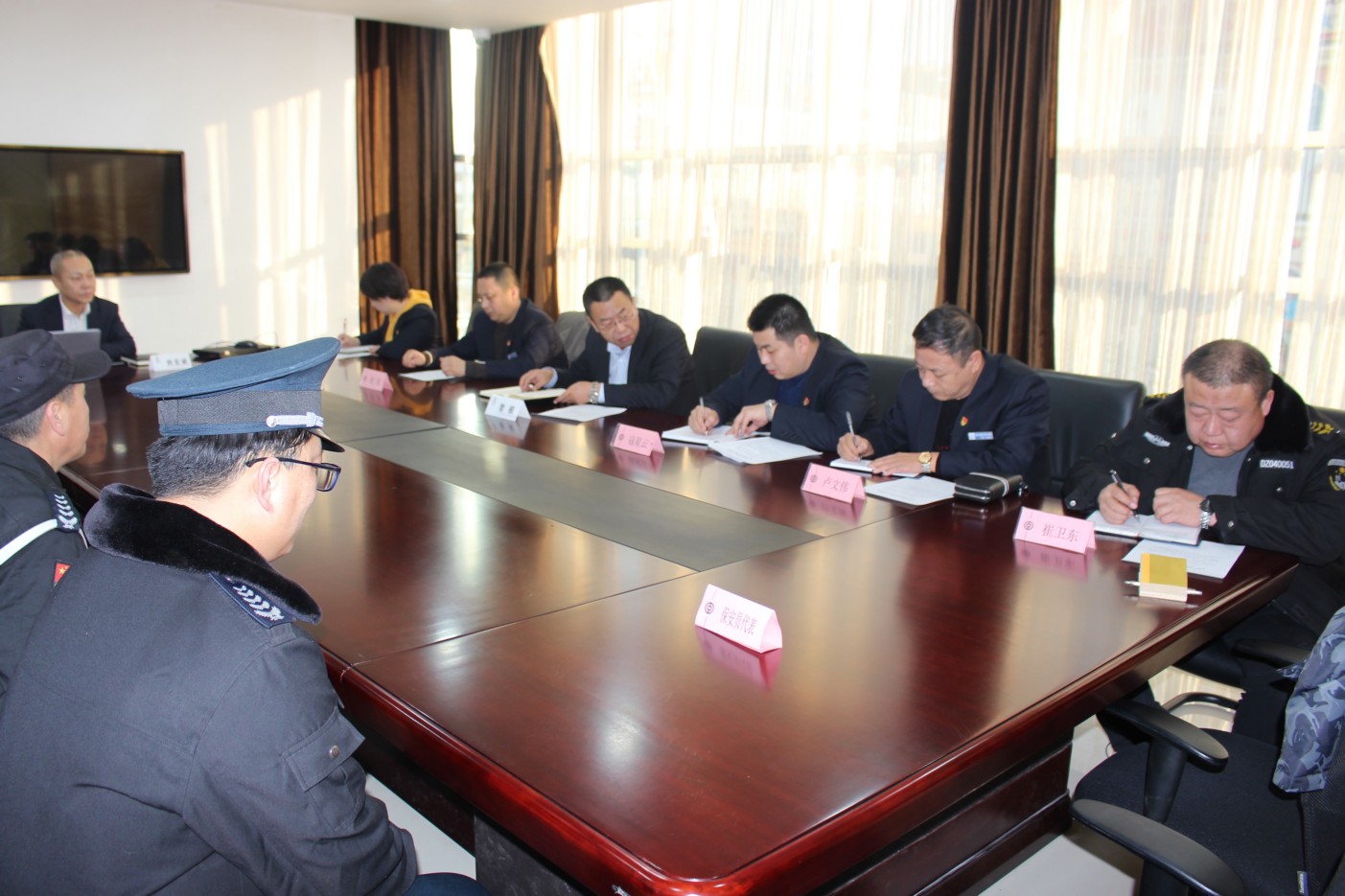 1月19日,集團(tuán)公司與中國銀行股份有限公司忻州市分行在忻州市分行三樓會議室召開聯(lián)席會。集團(tuán)公司董事長助理、守押公司副總經(jīng)理寇星云、忻州市分行紀(jì)委書記賀模出席。會議由中國銀行忻州分行監(jiān)察保衛(wèi)部主任杜宏斌主持。忻州市保安服務(wù)公司副總經(jīng)理盧文偉及守押、技防等相關(guān)業(yè)務(wù)負(fù)責(zé)人參會。
