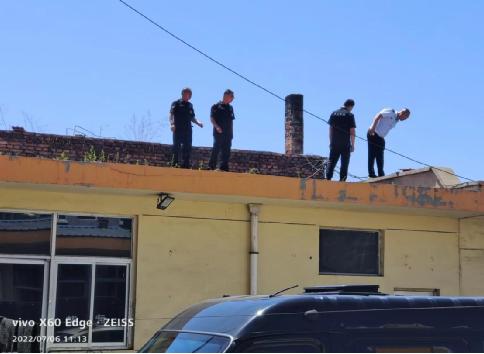 檢查組還深入各中隊(duì)現(xiàn)場辦公,現(xiàn)場查看用電、用氣、用水等方面可能存在的安全隱患。檢查中,發(fā)現(xiàn)五寨中隊(duì)屋頂上面有一根電線連接不規(guī)范,領(lǐng)導(dǎo)親自上去屋頂將電線整改規(guī)范并要求基層管理人員在今后的工作中認(rèn)真排查,不放過任何一安全隱患,發(fā)現(xiàn)一個(gè)整改一個(gè),要求各中隊(duì)要認(rèn)真仔細(xì)排查,不留死角,不留隱患,要舉全員之力,打破重重困難,互相配合,全員“一盤棋”,努力交出“百日安全無事故”活動(dòng)滿意的答卷。